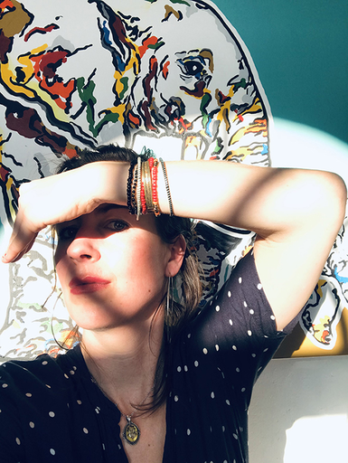 Positivity, Colors, and Freedom to Roam The use of color is an important part of her artistic vocabulary: 'Colors make people happy, and I’d like to bring joy and positivity to the world.' Her palette could represent an animals natural environment, the hunt, or an emotion; depending on what she wants to communicate. And however more subdued, the background is part of this. She uses oddly little shapes of color to 'fill' her animals. 'These represent imaginary continents', she explains, 'And can represent the areas where the animal belongs, or where it wants to be. In my artistic world, everything is possible. My animals can roam freely.'